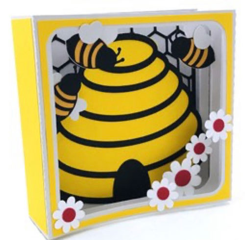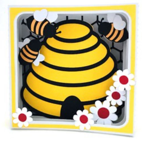 It’s August in the south & it’s hot hot hot! With hot, comes bugs! But, we promise – these bugs you will love!! Come join us as we put together this adorable ladybug scrapbook layout. It may look difficult, but we will make it easy as a summer breeze! We will walk you through every step of layering, and you will leave with a finished 12 x 12, two-page layout, all ready for you to add your Spring or Summer photos! Class includes all pre-cut parts to make this layout, which will be lovingly cut for you by Michelle Matthews of mmdesi9ns. AND…. As a BONUS (I mean who doesn’t like bonuses!!), you will get the shadow box base card and all the pieces and parts to make this shadow box beehive card, designed by Paper Closet Designs, and lovingly cut for you by Michelle Matthews of mmdesi9ns.