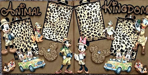 Who doesn’t love going to Animal Kingdom at Disney! This is my most popular theme layout from everyone’s trip. We will be using clipart to make this layout pop with lots of characters and of course some bling and inking to complete it.