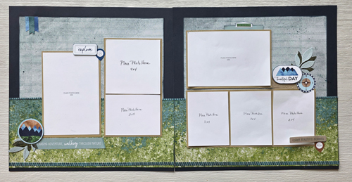 Your photos of your outdoor adventures will take center stage in the double page layout featuring Stampin' Up!'s Nature's Walk Designer Series paper, sticker sheet and Nature's Symphony stamp set & dies. You will recieve a full sticker sheet so you can use the stickers that best suit your outdoor photos.