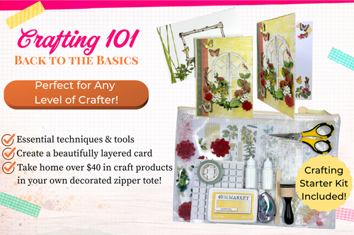Ready to level up your craft game? Whether you're brand new or have a stash that could rival a small store, this class is all about mastering the basics the right way. In this hands-on class, you'll learn how to choose the perfect adhesive for every layer, build dimension like a pro, and add texture that makes your projects pop. We'll breakdown why certain brands matter, where products shine, and how small tool choices make a difference. You will complete a beautifully layered greeting card and head home with a curated starter tool kit valued at over $40 - packed with essentials you'll actually use again & again.