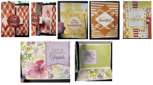 8 cards using watercolor-inspired patterned papers filled with soft washes of color, artistic textures, and dreamy blends.