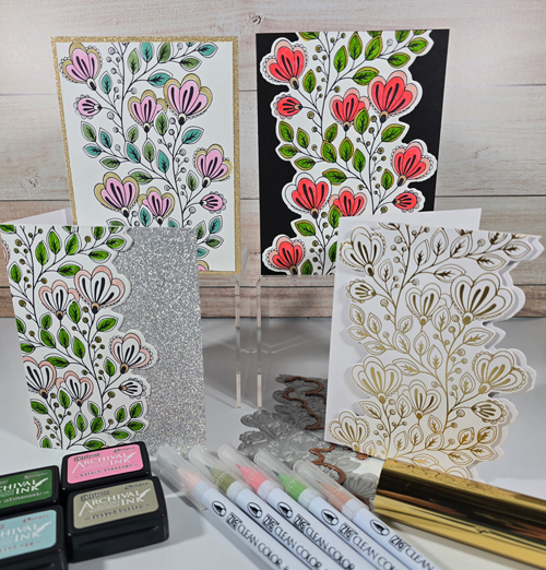 Create four distinct A2 cards using multiple techniques. In the class, you’ll design four A2-sized cards using a coordinated plate, die and stencil set. Three cards will feature the BetterPress method, while two (including a bonus card) will showcase the Glimmer Foiling process. Techniques include Zig pen coloring, ink application, and foiling for a polished finish. All participants will receive the plate, dies, and stencil set – valued at $45 – to use during class to keep for future projects. Envelopes included.