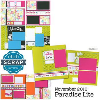 • Products You’ll Play With: Club Scrap's Paradise Lite kit and Fiskars 12-inch guillotine trimmer for use during class.