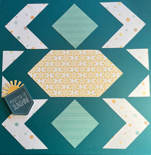 Each participant gets a Template and a kit that includes 6 sheets of double sided decorative paper, 1 sticker sheet, three sheets of cardstock and a project recipe that provides instructions for 2 additional layouts.