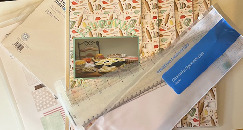 Participants will receive 1 CM top loading 12x12 page, 1 sheet of Island Waters Cardstock, coordinating paper from the Cookie Exchange paper pack, 6x12 Peek a Boo Pockets and the new Cascading Spacer Set