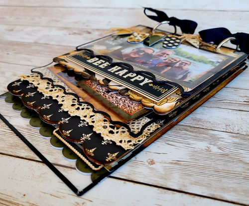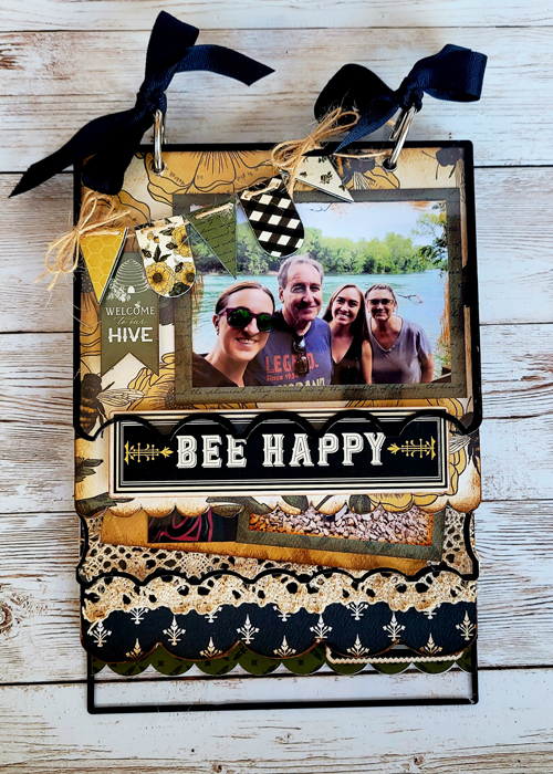 This 5.5”x8.0” acrylic n chipboard album makes the perfect memory piece. Each page gets a little bigger with 3 acrylic pages and 2 chipboard pages giving you a total of 10 decorated pages. You will love working with acrylic and chipboard to create a one-of-a-kind mini album. We also laser cut your papers so you can focus on the techniques and not measurements. We will be using Vintage Bee Happy Collection to create your one-of-a-kind mixable album.