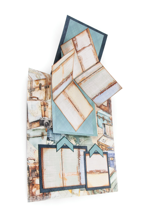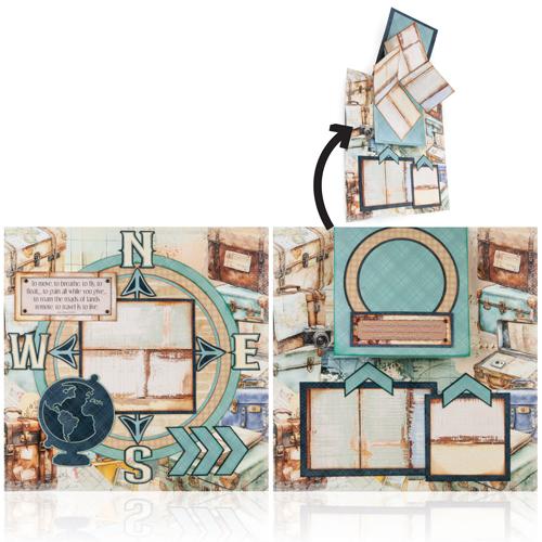 Using our brand new paper line “Pack Your Bags”, we will play with loads of embellishments, making a 3 layered globe, 3 layered NSEW letters. You will create a giant compass and it has lots of vintage suitcases piled along the sides of this paper. The fun part is creating a hidden pop-up book that will house at least 4 more photos. This project is perfect for those special travel photos that you have been waiting for just the right layout. This is it! You will love it.
