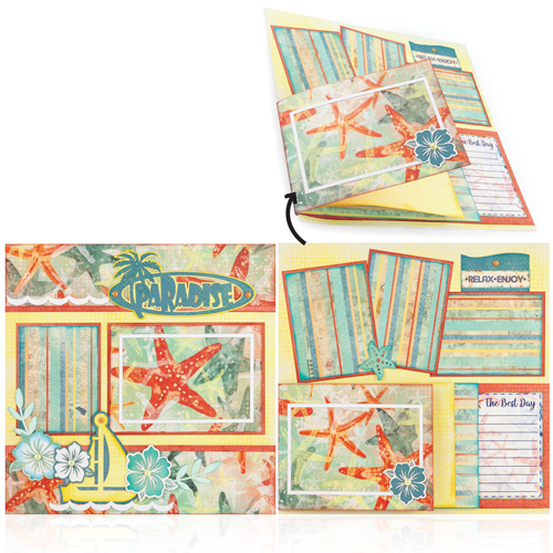 Join us in Paradise! If you have vacation pics that need a home, our Paradise class will be just the perfect addition! We all dream of a day just like this. Using our new Seascape and Rhapsody paper lines we have all the embellishments to make it highlight your best happy photos. We also included a little book to house more photos that is accessible on the outside of the page protector. Come create with Quick Quotes! It will be fun!